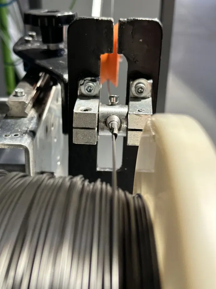 Every filament that leaves the extruder immediately passes through a dual-axis laser diameter gauge. This precise system checks the filament thickness every 30 milliseconds – meaning more than 30 measurements per second.