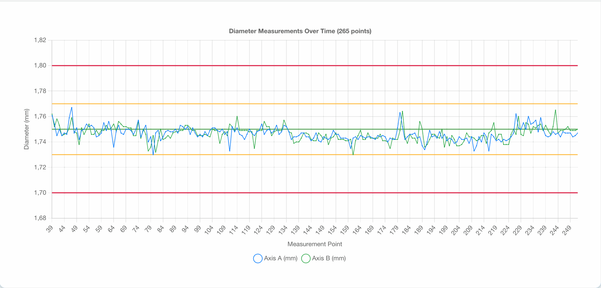 For PLA+ filaments, we maintain a diameter of 1.75 mm with an accuracy of ±0.02 mm, while for PETG the tolerance is ±0.03 mm. For special types, such as Carbon Fiber or Woodfill, the allowed deviation is ±0.05 mm.
