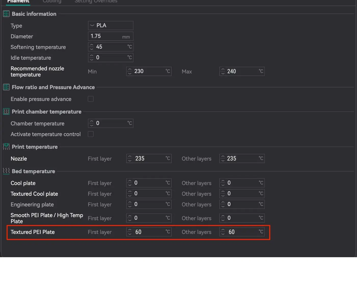 | Printing Temperature | 230-240°C |